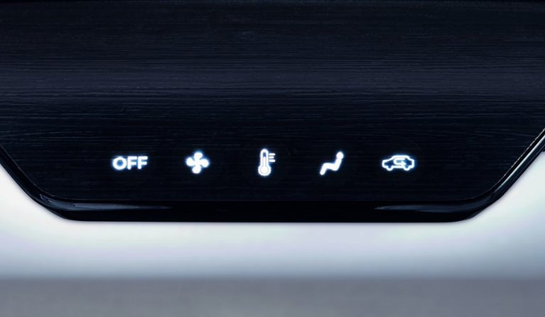 The central control with high brightness and touch function can be hidden under different materials, typically concealed unless air conditioning and audio operations are needed. This design choice seamlessly integrates with the cabin interior design and ensures that the interface is easily accessible when necessary.